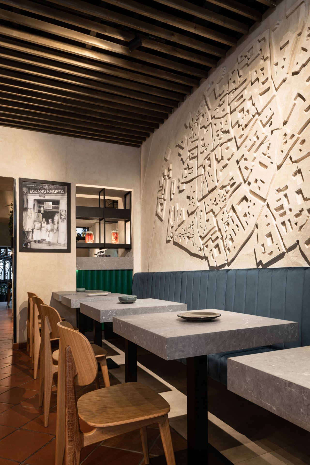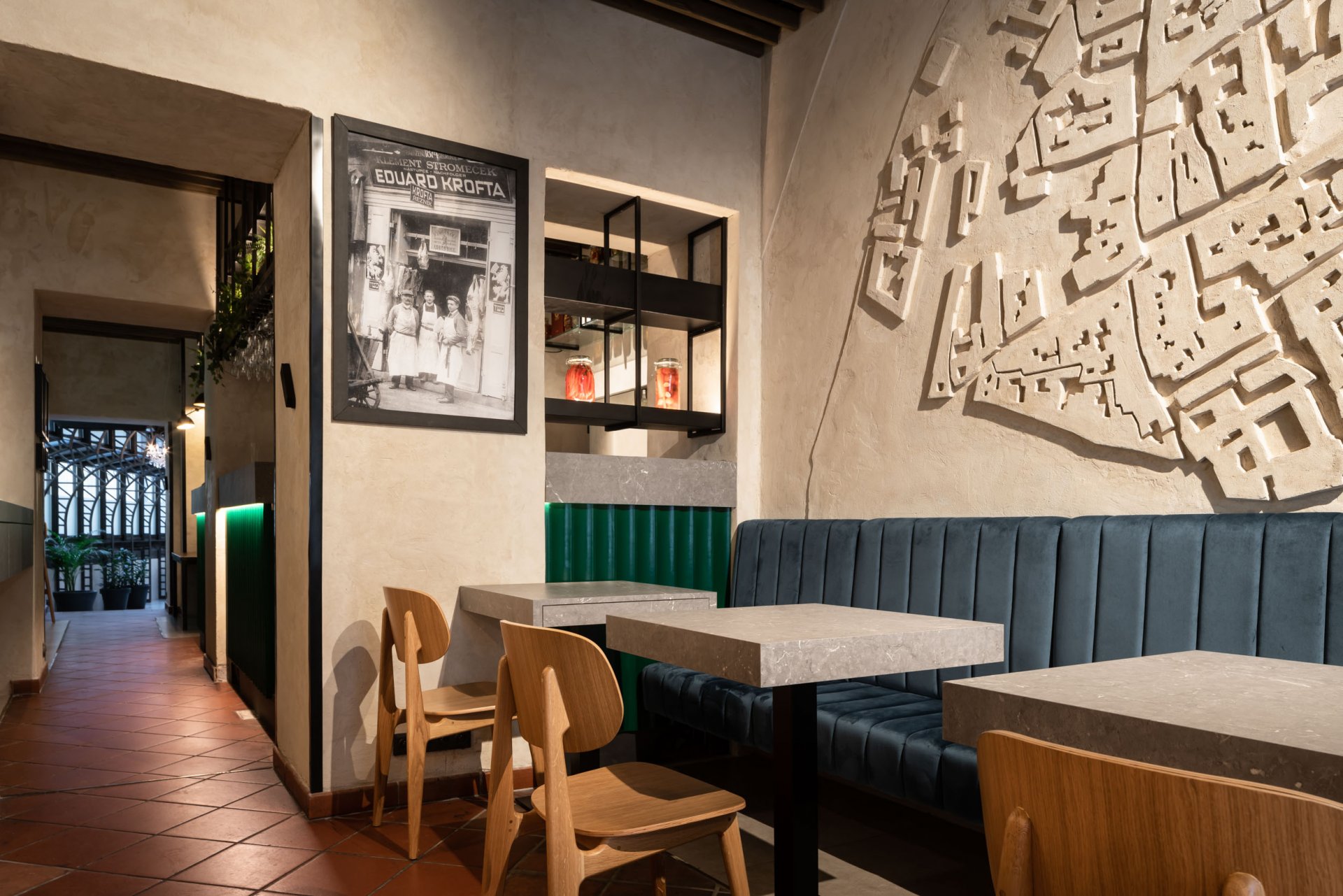 Je to restaurace s dlouhým příběhem, který ovlivnil návrh interiéru.