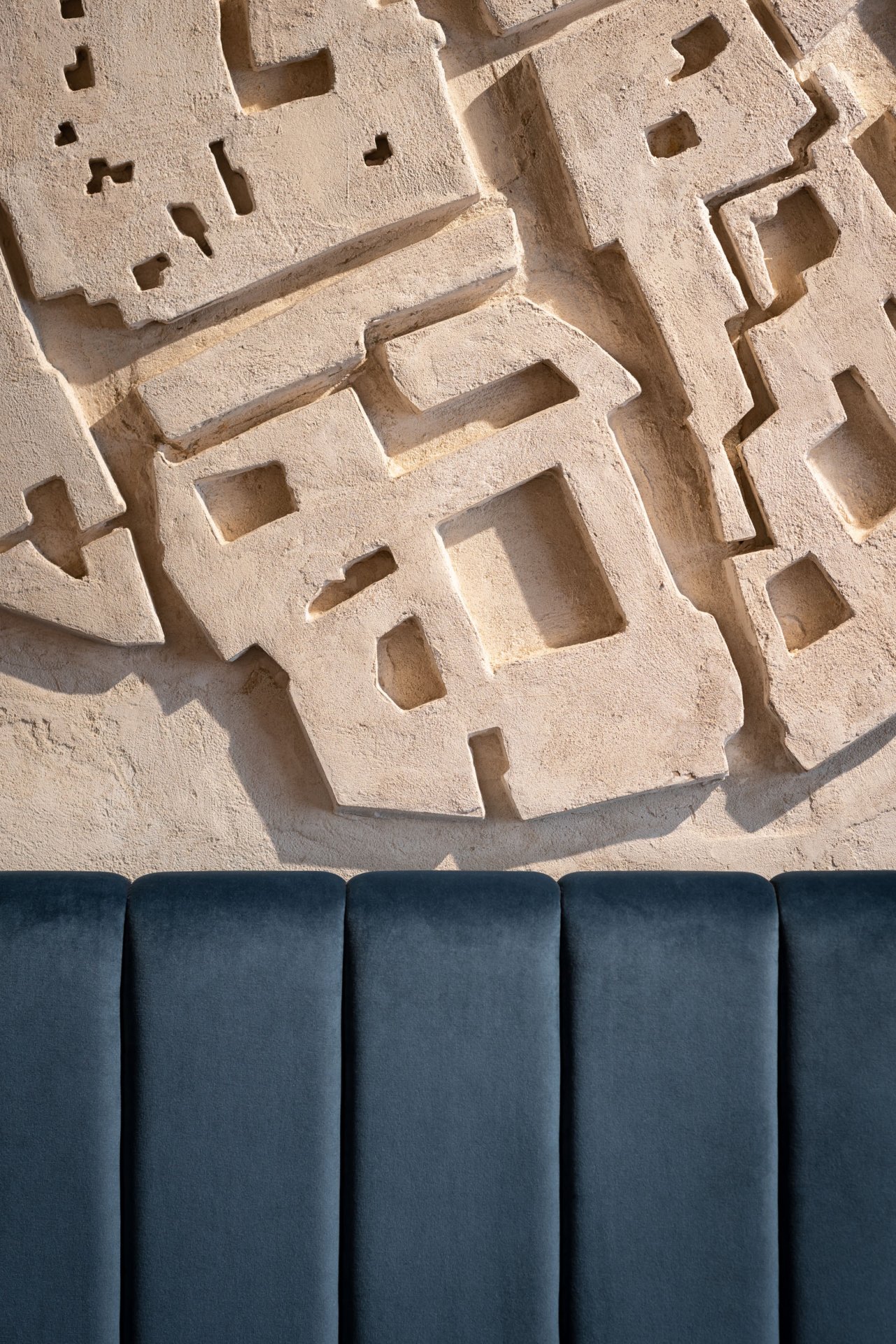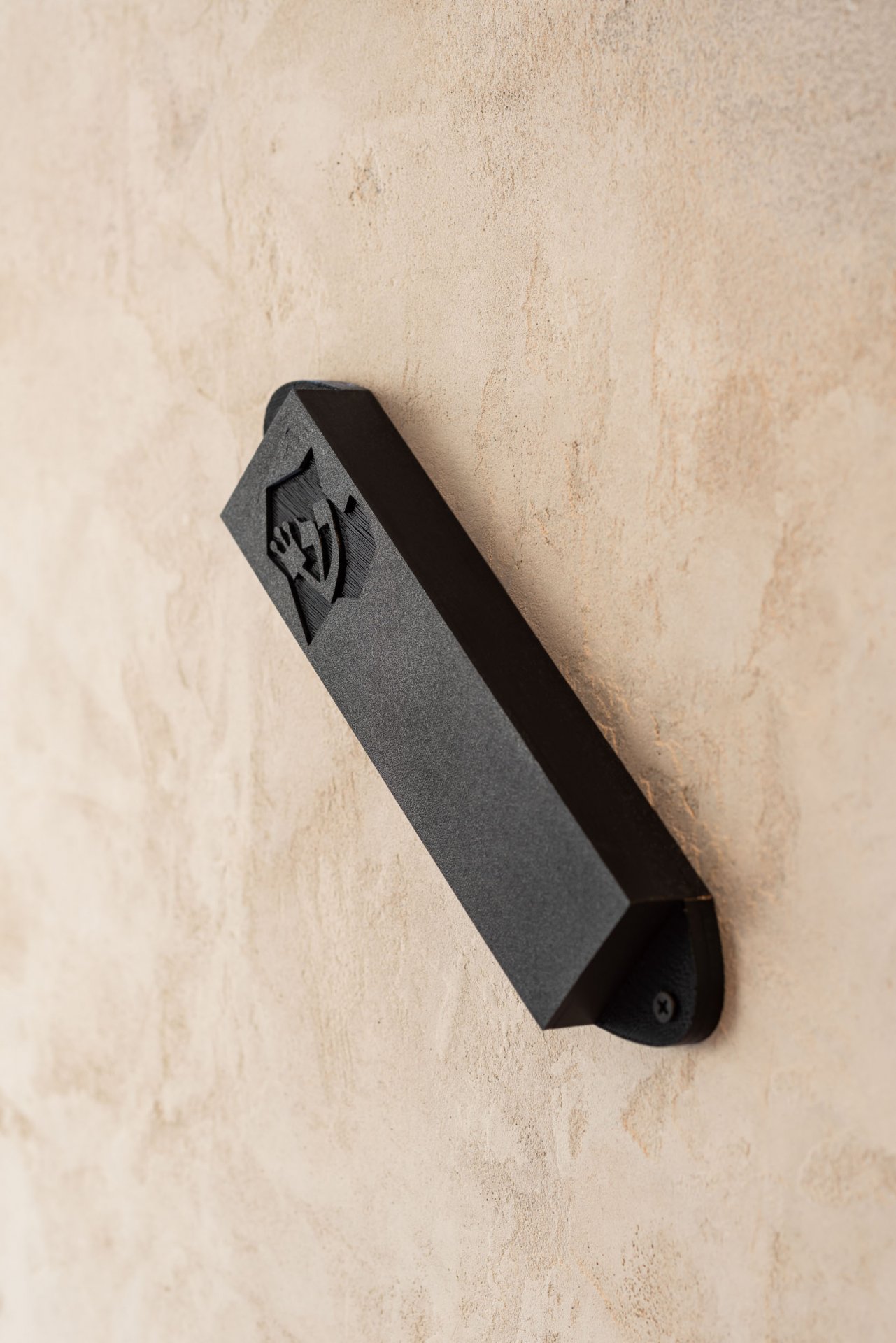 V interiéru nechybí symboly jako Mezuza, umístěná na každém průchodu. Což je tradiční schránka s pergamenem s pasážemi z Tóry, kterou se opatřuje každý židovský dům. Zde ale v moderním pojetí, vytištěné na 3d tiskárně.